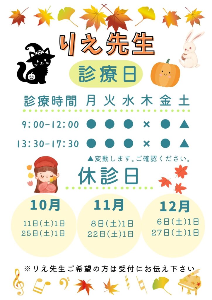 ★りえ先生休診日★